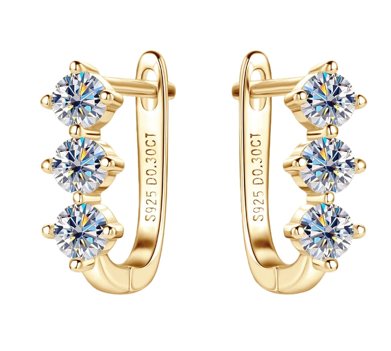 Designed to frame the face with subtle brilliance, Celeste moves effortlessly from daylight to evening. Astonishing luminous stones are aligned along a slim gold-toned hoop, creating a vertical line of sparkle.The silhouette is refined, the shine controlled — never overpowering, always captivating